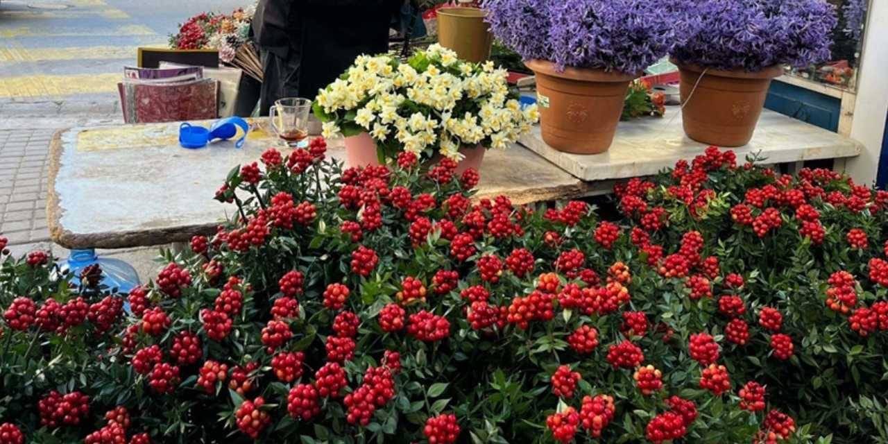 Yılbaşına kısa süre kala tezgahlardaki yerini alan kokina çiçeği, İzmir’de de yoğun talep görüyor. İzmir’de kafe ve sokak süslemelerinde de yer alan kokina, neredeyse tüm çiçekçi tezgahlarında bulunuyor. Kazım Kış, geçen yıla göre kokinaya talebin yüzde 100 arttığını söyledi.