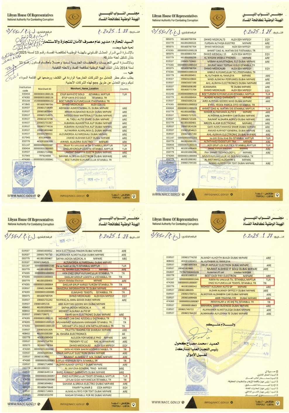 Libya Temsilciler Meclisi Yolsuzluklarla Mücadele Ulusal Komisyonu, Ocak 2025’te onlarca şirketin faaliyetlerinin yasaklanmasını ve POS işlemlerinin kapatılmasını talep eden gizli bir gizli listeyi, Libya’nın Aman Bankası’na gönderdi.
