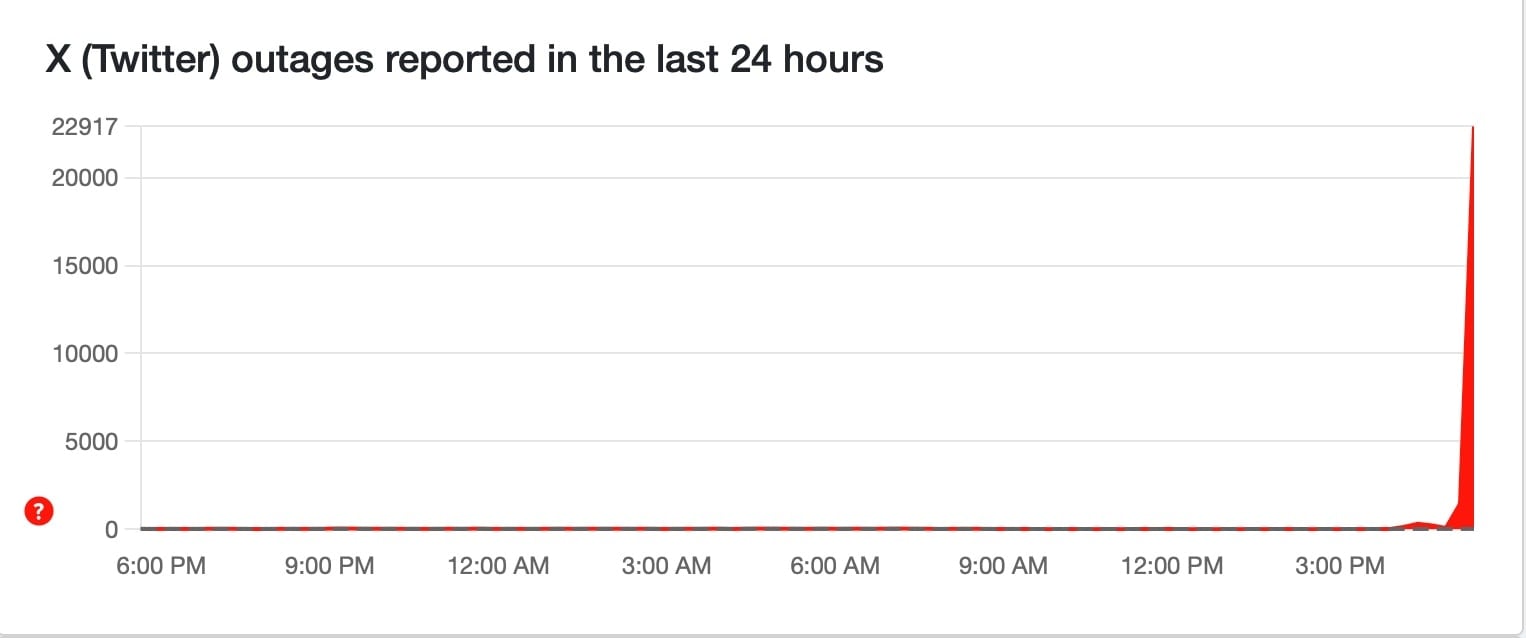 X platformuna neredeyse 1 saatten uzun bir süredir erişim sıkıntıları yaşanmaktadır. Kullanıcı hata bildirimlerine göre yapılan analizlere göre, erişim sorunu küresel düzeyde yaygındır ve downdetector tarafından global kesintiler bildirilmektedir.