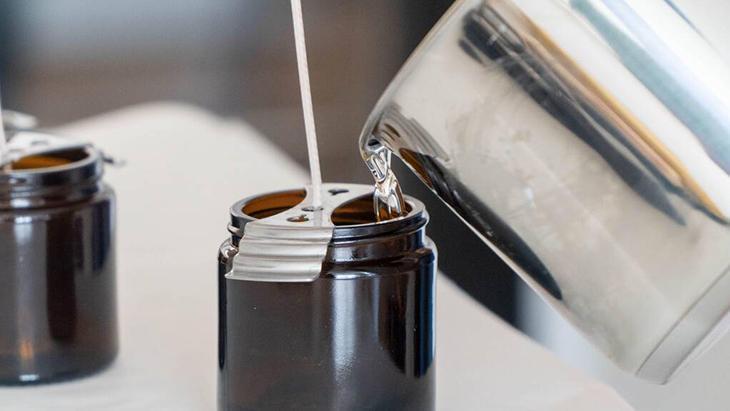 Hazırladığınız sıvı wax’ı dikkatlice kavanozun içine dökün. Kahve çekirdeklerinin dibe çökmesini istiyorsanız karışımı yavaşça dökün.